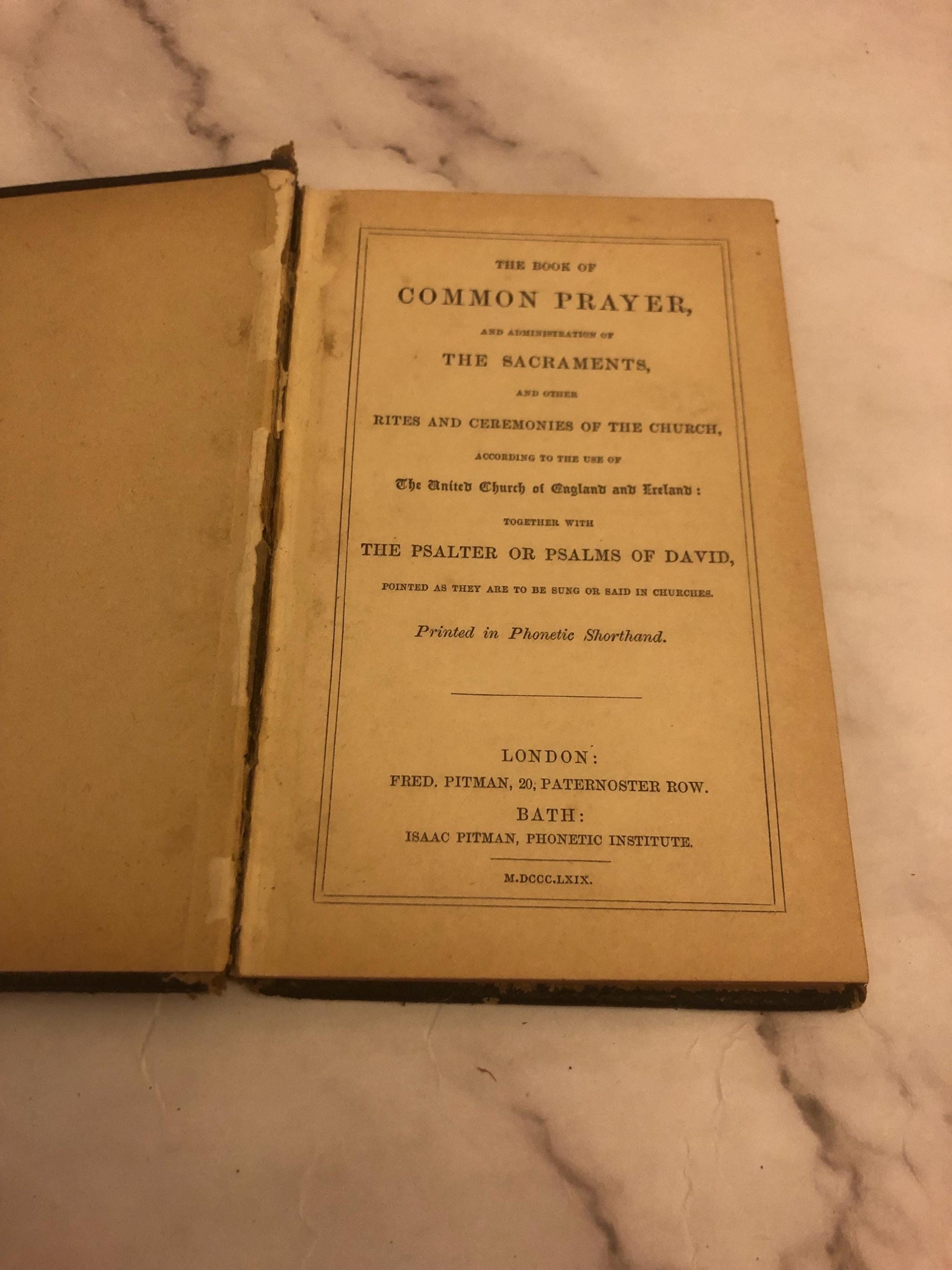 The book of common prayer, and administration of the sacramentsthe psalter or psalms of david printed in phonetic shorthand published - 1869measurement size - 10.5cm width, 1.3cm depth, 16.5cm height