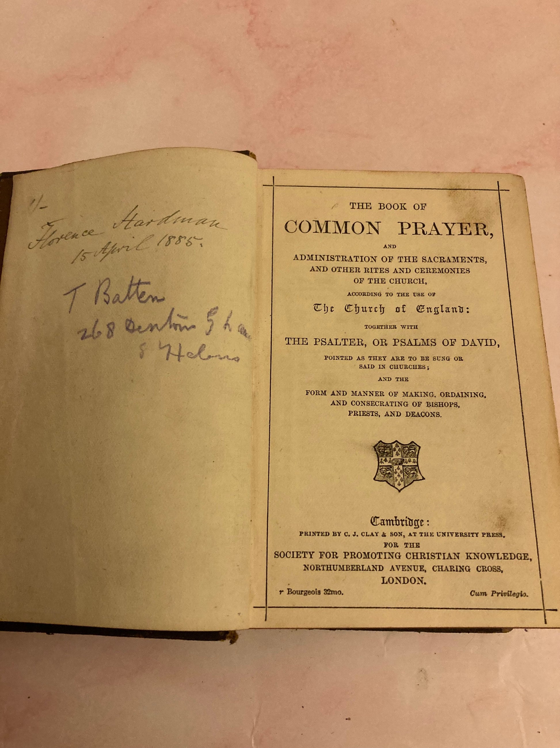 The book of common prayer together with the psalter, or psalms of david note: 1885 pocket size approx measurement - 8cm width, 3cm depth and 12.5cm height