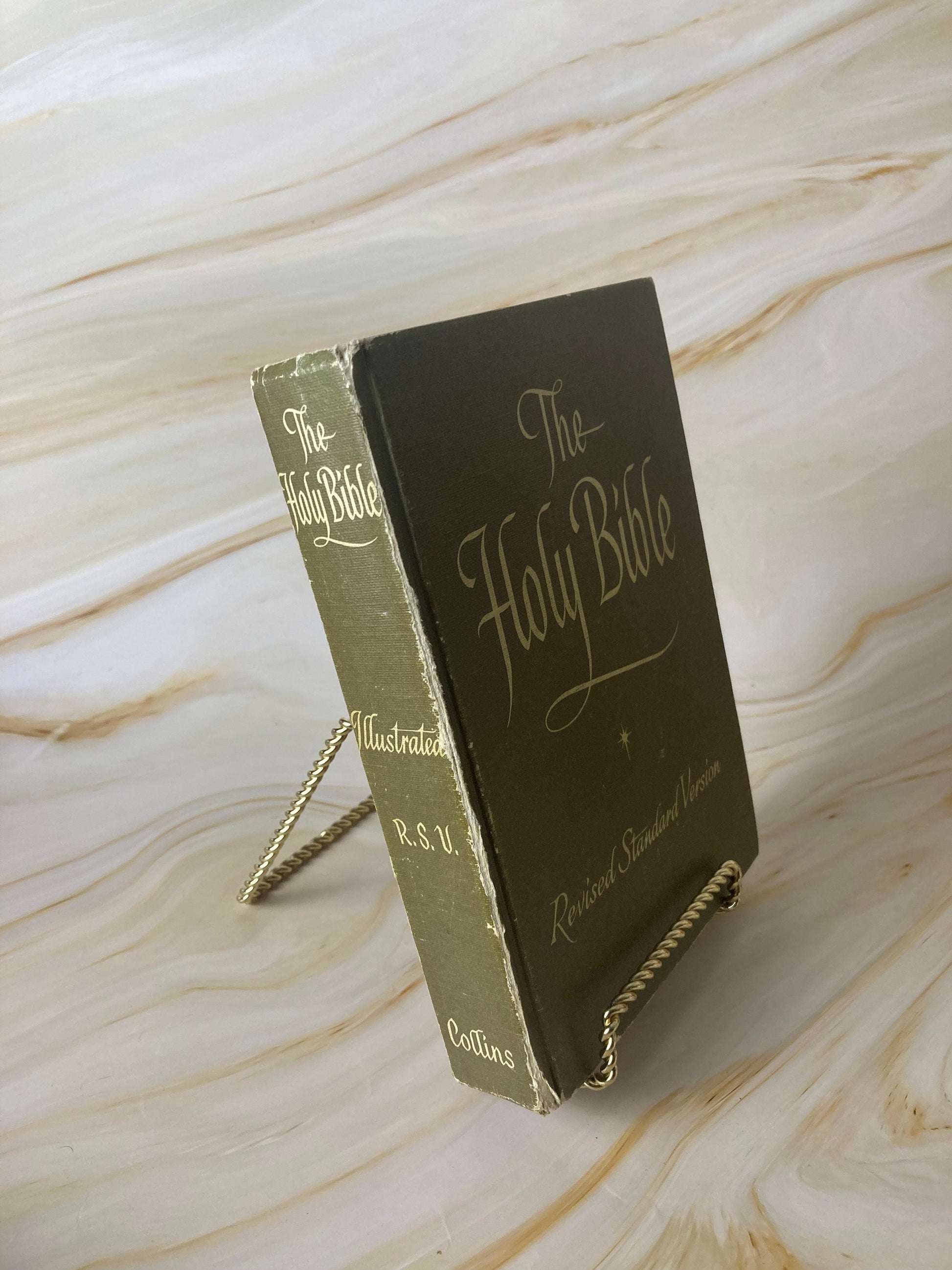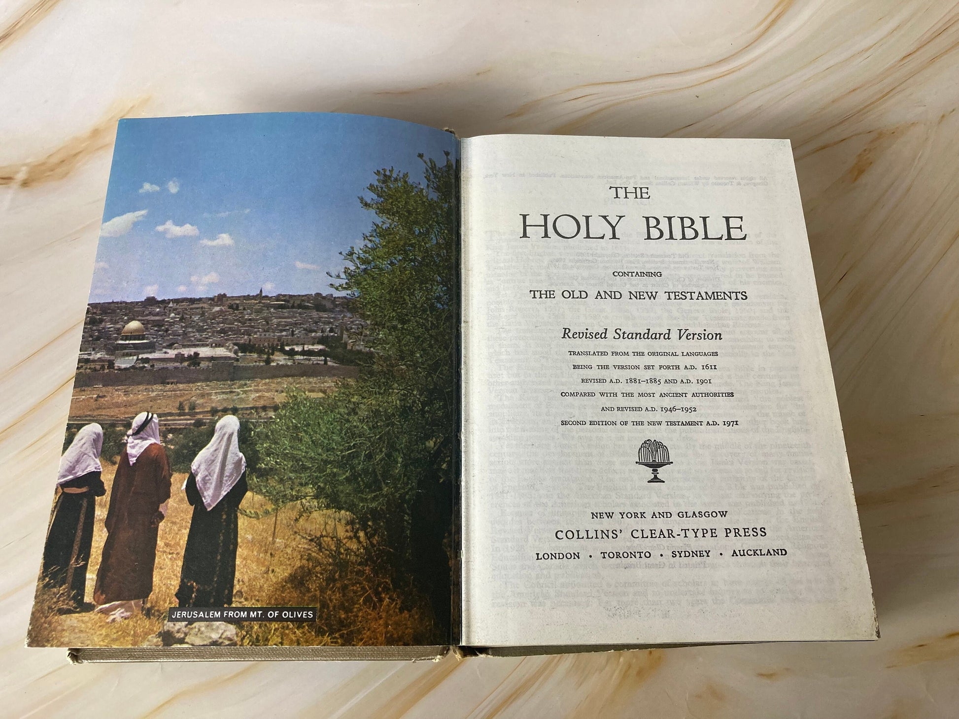 The holy bible - revised standard version1971includes beautiful photos of real places in the bible in jerusalem, joppa and the golden gate etc.approx size - width 14cm, height 19cm, depth 3cm